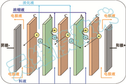 均相膜電滲析工作原理示意圖 |